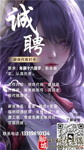 工作内容:游戏**,基础是打游戏,练老板账号,完成老板**需求。