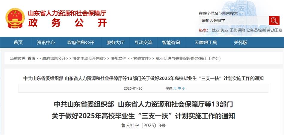 中共山东省委组织部 山东省人力资源和社会保障厅等13部门关于做好2025年高校毕业生“三支一扶”计划实施工作的通知